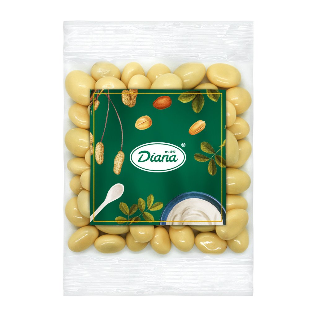 - Zutaten: Joghurtglasur 55% (Zucker, pflanzliches Palmfett, Molke aus Milch, Reismehl, Joghurtpulver aus Milch 3%, Sonnenblumenlecithin E322, Gummi Arabicum, Schellack E904), Erdnüsse 45%
