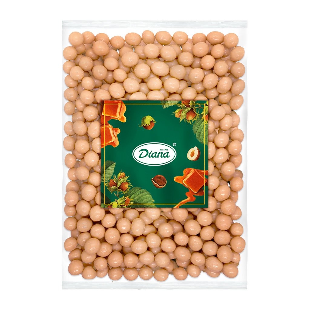 - Zutaten: Karamellüberzug 67% (Zucker, pflanzliches Palmfett, Milchmolke, Reismehl, Sonnenblumenlecithin E322, Gummi Arabicum, Schellack E904, Karamellfarbe, Aroma), Haselnusskerne 33%