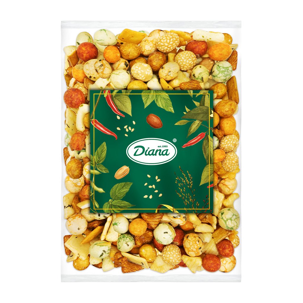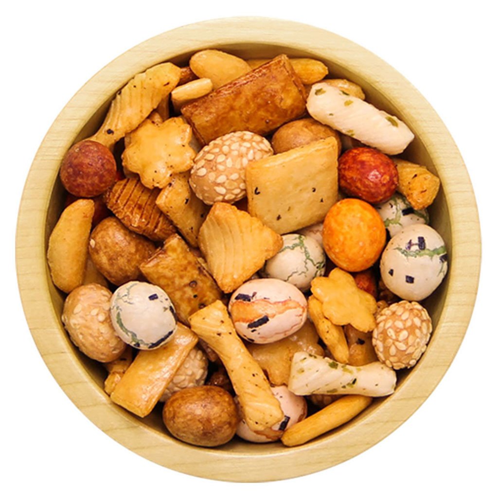Die japanische Mischung besteht aus verschiedenen Formen und Geschmacksrichtungen, von denen einige mit knusprigen Erdnüssen gefüllt sind. Es handelt sich um ein traditionelles japanisches Dauergebäck, das in Japan vor allem zum Tee serviert wird. Einige Cracker haben einen ausgeprägteren, andere einen milderen Geschmack, so dass die Mischung ein ausgewogenes Zusammenspiel aus Geschmacksrichtungen für jeden Geschmack bietet. Sie finden auch Erdnüsse in einem Teig mit Sesam oder Algen sowie Cracker mit einem Schuss Sojasauce oder mit Chili darin.