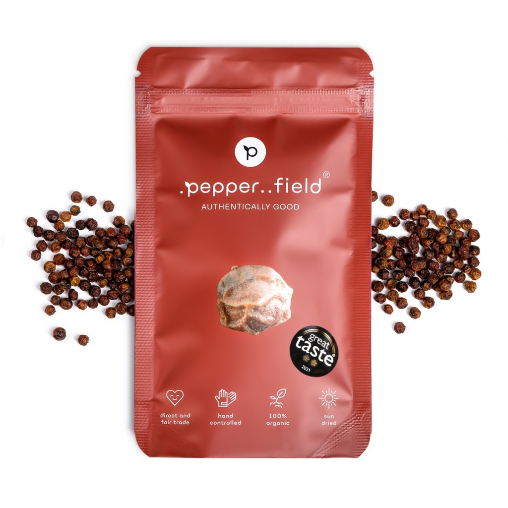 Dass der Kampot-Pfeffer von .pepper..field von außergewöhnlicher Qualität ist, wurde durch den Gewinn auf dem Welt-Gastronomiewettbewerb GREAT TASTE AWARDS in London bestätigt, bei dem .pepper..field als einziger Hersteller in der Tschechischen Republik in der Geschichte des Wettbewerbs die goldene Trophäe Golden Fork für seinen gefriergetrockneten Pfeffer erhielt. Das Unternehmen praktiziert nachhaltiges Wirtschaften nicht nur in Kambodscha, sondern auch in der Tschechischen Republik, wofür es bei den SDG Awards als eines der nachhaltigsten Unternehmen der Tschechischen Republik ausgezeichnet wurde. .pepper..field hält sich an hohe Nachhaltigkeits- und Qualitätsstandards - Kampot-Pfeffer wird direkt auf den Farmen in Kambodscha vakuumiert und in kürzester Zeit nach Tschechien exportiert, wo er mehrfach kontrolliert wird. Der Pfeffer wird erst kurz vor dem Versand an den Kunden in kleinere Packungen verpackt, so dass der Pfeffer besonders frisch ankommt. Die Verpackung ist nachhaltig, recycelbar und hat ein luxuriöses Aussehen und Design, auf das .pepper..field stolz ist.