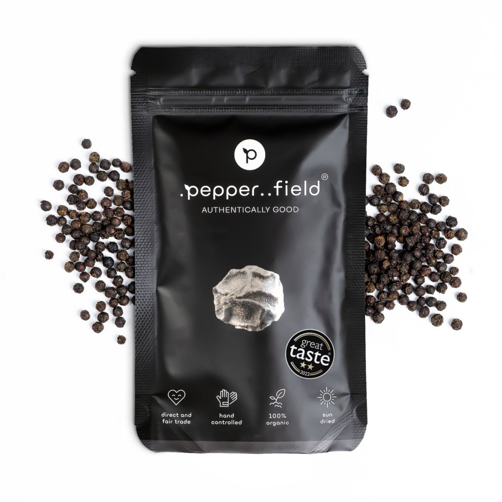 Genießen Sie echten schwarzen Kampot Pfeffer von der tschechischen Firma .pepper..field., frisch und 100% fair importiert von kleinen Bauernfamilien in Kambodscha.